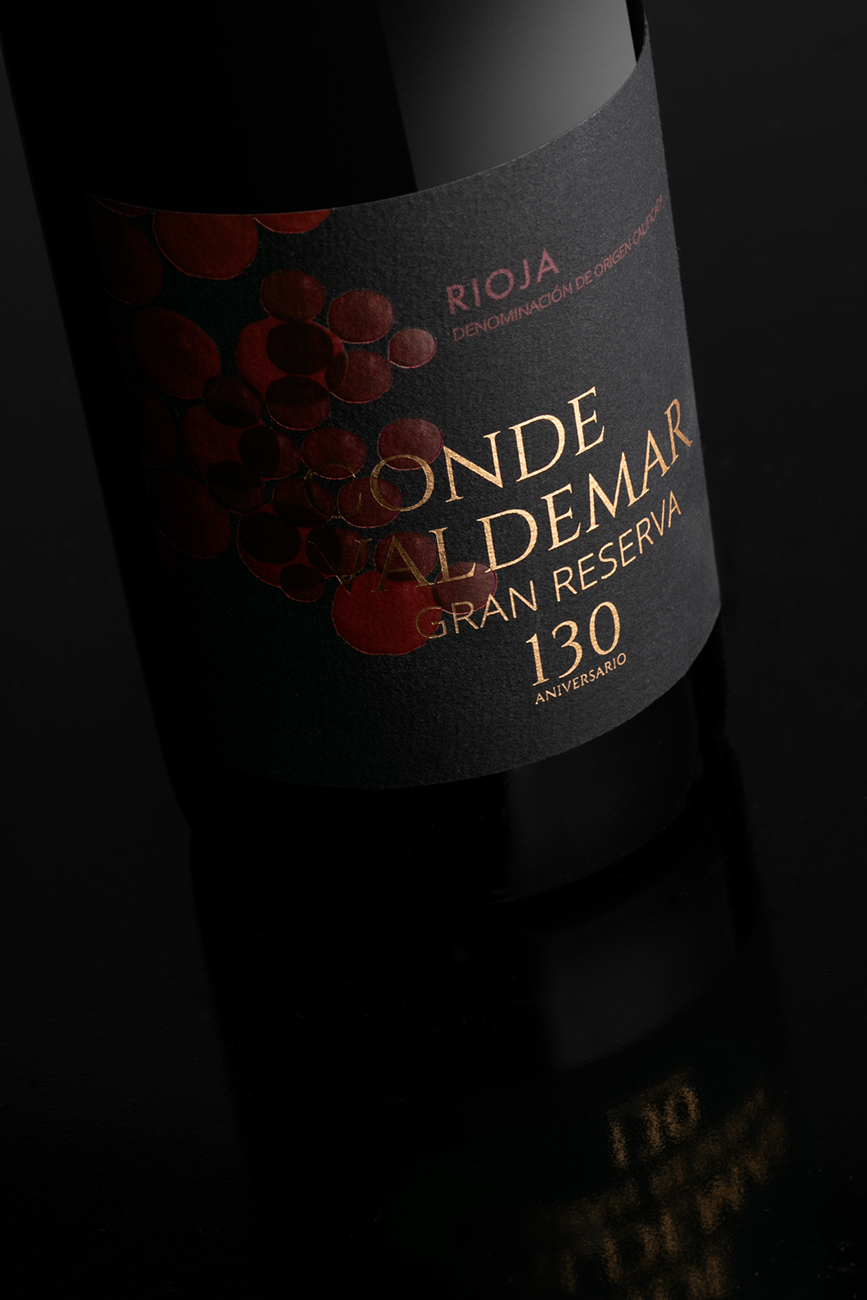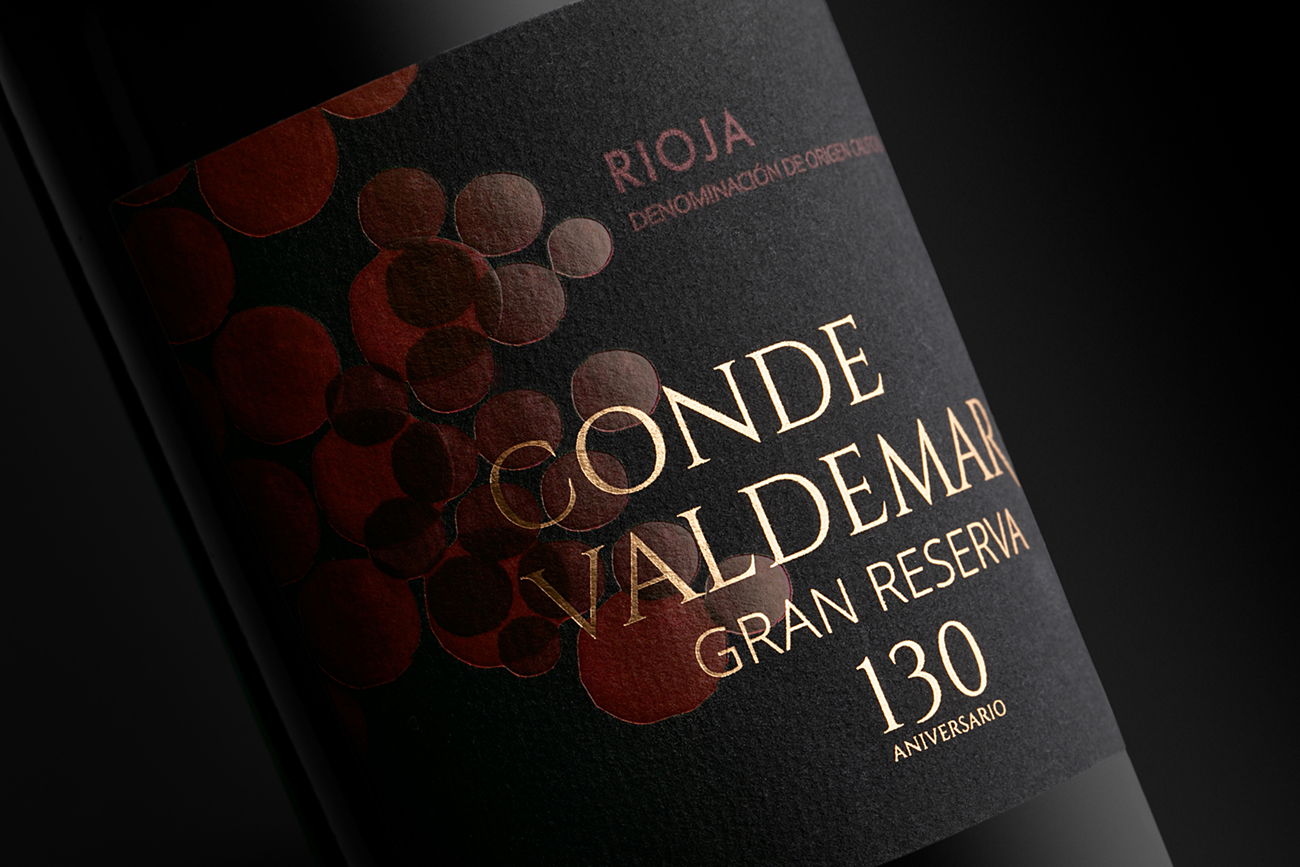 Un diseño exclusivo y una alta impresión para un vino de alta expresión, el escogido para conmemorar el 130 aniversario de Conde Valdemar, que procede de una exclusiva selección de viñas viejas de Rioja Alavesa, propiedad de la bodega.