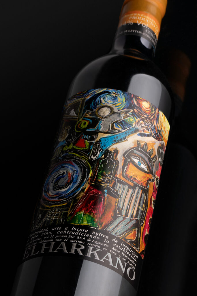 Creatividad, arte y locura nutren de inspiración a este vino que contradice lo establecido. Elharkano es un vino de Tempranillo y otras variedades, elaborado con el máximo respeto en viña y en la bodega Cuna de Maras al margen de denominaciones pero procedente de una pequeña viña de Rioja Alavesa.