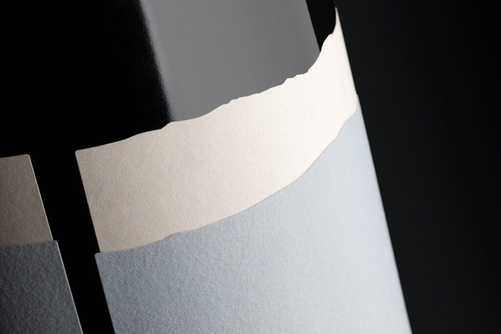 La cumbre de esta etiqueta es la inserción de dos papeles, uno de los cuales guarda al otro, y un troquelado especial en ambos.