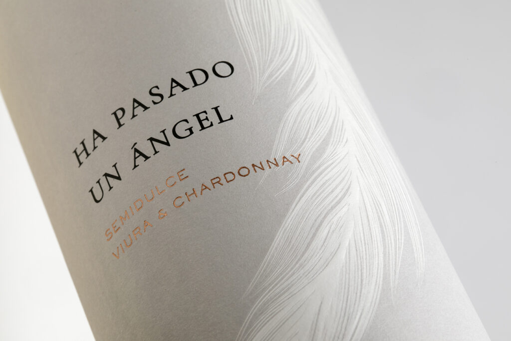 Cuando un grupo de personas está charlando distendidamente y, de repente, todas callan y se produce un silencio, suele utilizarse la expresión «Ha pasado un ángel». Esto es lo que ocurre cuando se descorcha este blanco semidulce de Viura y Chardonnay con Denominación de Origen Navarra. Este silencio ante algo divino, celestial, dio nombre a este vino de Bodegas Príncipe de Viana y el equipo creativo conceptualizó esa idea en una pluma blanca, como de uno de estos seres alados.