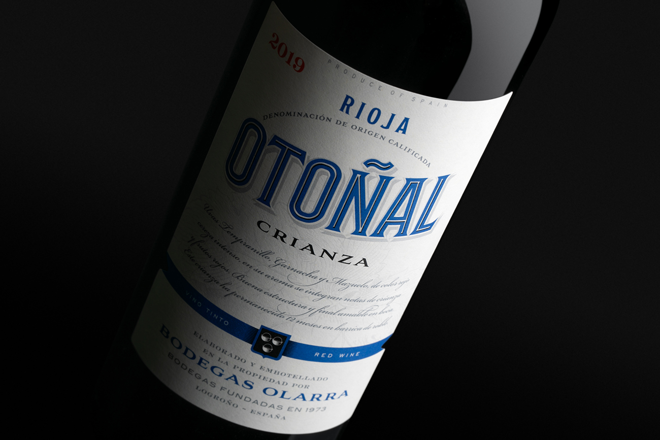 Una etiqueta sencilla con “sólo” un buen papel, cuatro tintas directas y, sobre todo, una serigrafía sobre la marca que le da brillo y relieve.