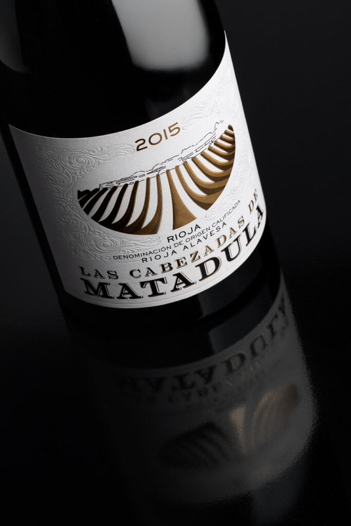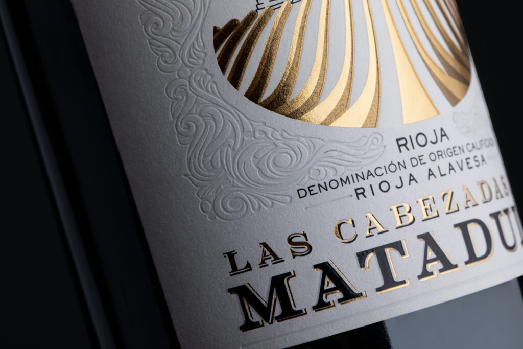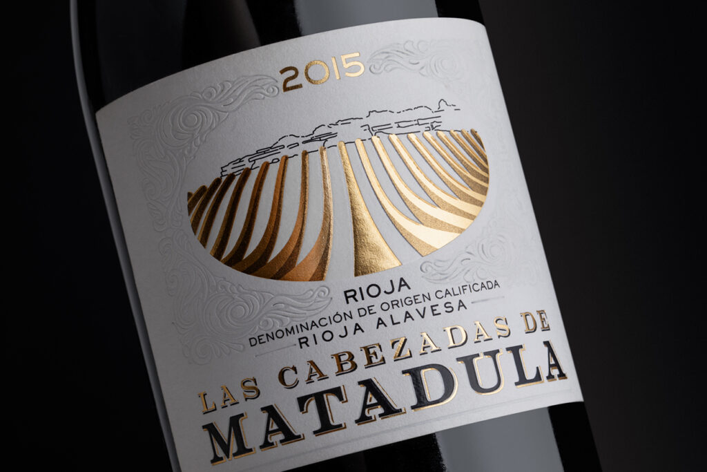 Esta etiqueta diseñada por Icono Gráfico está impresa en un papel de calidad. Incluye estampación oro semimate con una sobreimpresión sobre parte de la estampación y una serigrafía rugosa entre renques y sobre Matadula. Destaca también el relieve en la orla ornamental.