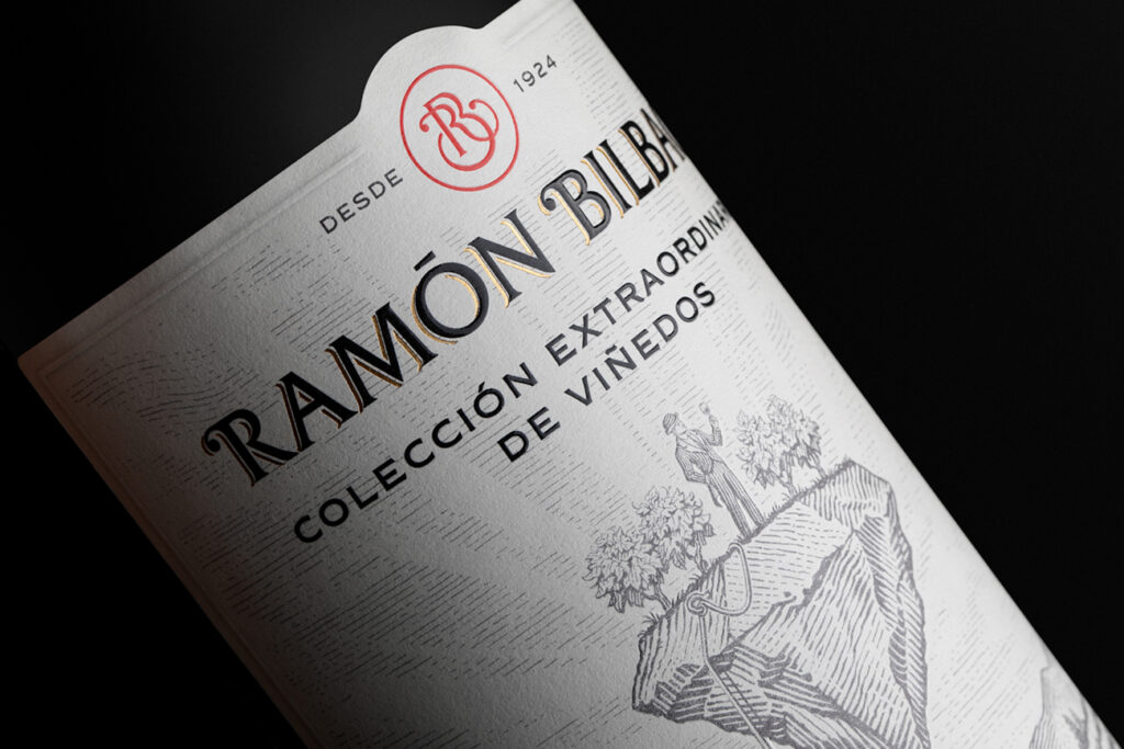 La etiqueta refleja el viaje de Ramón Bilbao por Rioja coleccionando paisajes y cepas que cuentan historias diferentes, “arrancándolas” de la tierra para unirlas y elevarlas